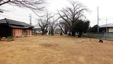 しばしば目にする穏やかな佇まいの拝殿が広い境内の片隅に見えます。辺りは氏子の方々の人家に囲まれていることもあり緊張することなく参拝が出来ました。