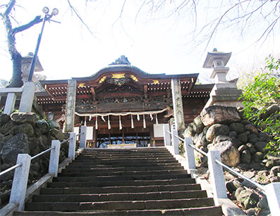 山名八幡宮住所:高崎市山名町1510−1。御殿場線の線路を踏切で越えて集落の中の道を進むと小山の前に鳥居が供えられた神社が見えました。道路脇のスペースに車を止めて石段を登る事にします。 2023.03.06 |