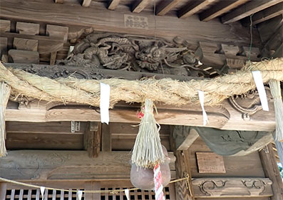 木彫が祀られた拝殿で鈴を鳴らしてお参りをさせて頂きます。木彫の彫も見ごたえのある出来に見えました。
