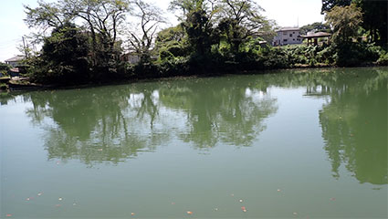 11:32・神社に隣接する”榛東八幡ホタルの郷”と呼ばれる大きな池を見ています。蛍の季節にはさぞかし優雅な夜空が辺りを覆うのでしょう。