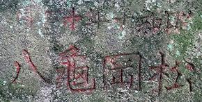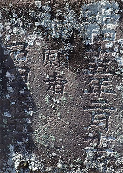 他の石組みの中の苔が覆った台座の隙間に”昭和十年”と思われる文字が見られます。左側に”二月”らしき文字が見られますが、共に断定が難しいのですが作られた例が多くみられる昭和10年の制作と推定させていただきました。