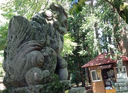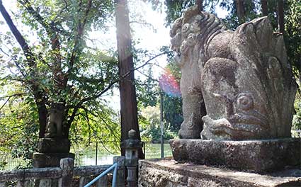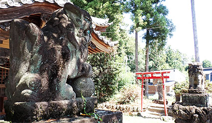 左に置かれた吽像から阿像を写しました。地元の集落の人達が大切に鎮護してきた温かみを感じさせる境内に祀られた狛犬からもそれが感じられます。
