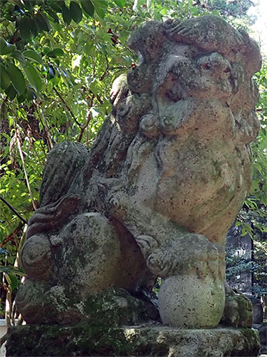 台座には年号が刻まれています。戦争へ向かう昭和15年(1940年)の作と思われます。この時代はそのような当時の世相を感じさせる祈念の文字が刻まれた石像をしばしばめにしますが、この狛犬の台座からは判読ができませんでした。