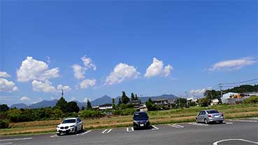 真夏を感じさせる青空の広がる駐車場には3〜4台の車が止まっているだけです。家に帰ってからせめて入り口だけでも見てくればよかったと後悔が胸に湧き上がってきましたがどうしようもありません。もし次回があれば是非訪ねたいと思います。