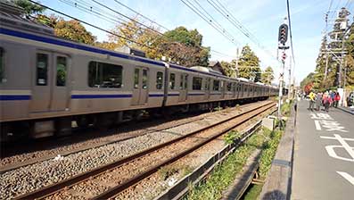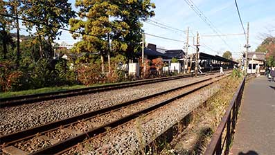 鎌倉駅方向から大船駅に向かう電車が通り過ぎていきます。