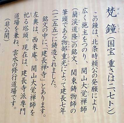 今日の最大の目的である建長寺でのお参りをさせていただくべく境内への門をくぐります。未だ早いせいか殆ど人影もないので心を落ち着け手を合わせてお参りをお願いしました。 総門をくぐると右に受付があるので、拝観料の¥500を払い入場券と案内の上記掲載のパンフレットをいただきました。