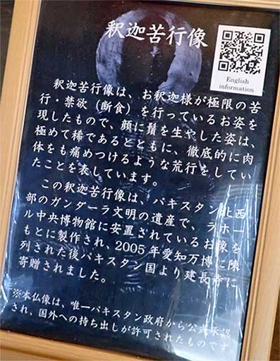 厳しい顔に体は骨と皮だけのやせ細ったお釈迦様の銅像は迫力さえ感じられます。