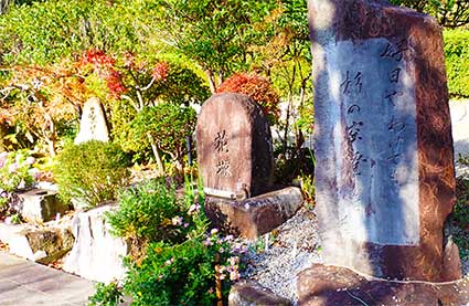 建長寺のパンフレットに載っている場所はほぼ見ることが出来たので更に坂を上って奥の院に向かうことにしました。 上に続く道に出る途中、境内の淵に歌碑と並んで”花塚”の石碑が見えます。野の花がさりげなく植えられていました。
