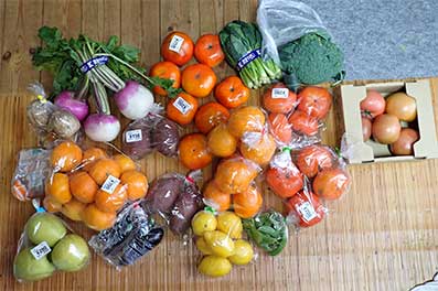 駅歩きではその重さに辟易としましたが家に帰ってその大量の買物に大満足です。村の暮らしでの野菜の買い物は、車での旅なので目方は気にすることもなかったので、それを忘れた今回ついつい買いすぎた事を心に留めなくてはなりません。ただ、果たしてこれらの野菜や果物類を目の前にしてその欲望が抑えられるか心配です。