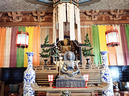 入口の説明板に書かれた御本尊の千手観音と釈迦苦行像がおかれています。手を合わせて旅の無事をお願いしました。
