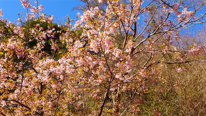 11:25・半僧坊への石段を登り出すと咲きだしたばかりの桜の花が姿を見せてくれました。暫く桜の花の周りを回って春の気配を楽しみます。