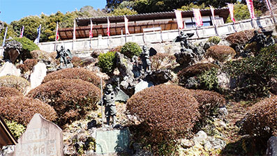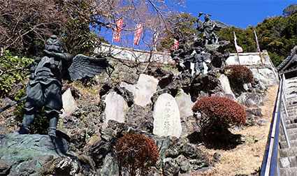 半僧坊の石段の周りには12体の色々な姿の天狗像が祀られています。
