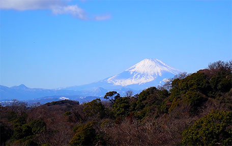 建長寺から冠雪の富士山