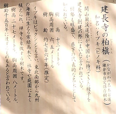 ←建長寺の柏槇(びゃくしん)案内板