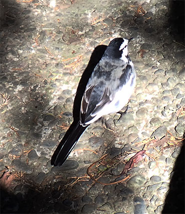 ハクセキレイと思われる鳥が、ビャクシンの大木をあちらこちらから見ている私たちの周りを逃げることも無くうろついていました。もしかすると、これからの旅の幸運を呼ぶ鳥かもしれません。