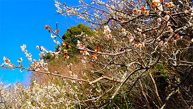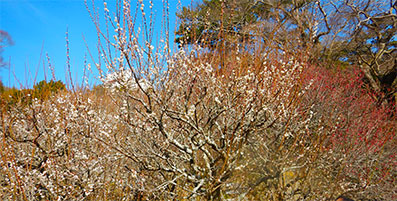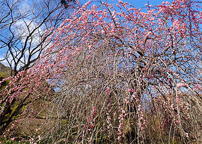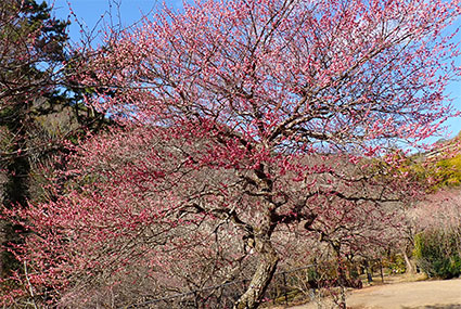 10:55・一際艶やかな満開の梅の花が見えてきました。少し上から見ようと坂を登ってから鑑賞します。