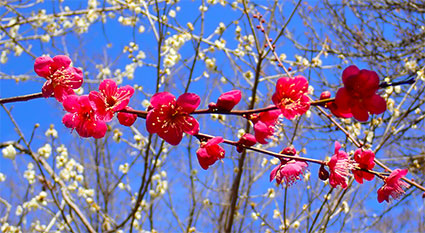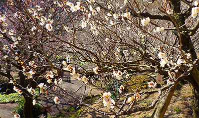 10:55・出来るだけ人混みを避けて進みます。この辺りには艶やかな梅が多く見られます。
