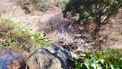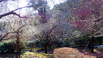 10:54・梅園の中を流れる左岸の上流部には幾つかの建築物や庭園が見られますが(2023年1月31日の熱海梅園)で見ているので今回は梅を見ることにしました。