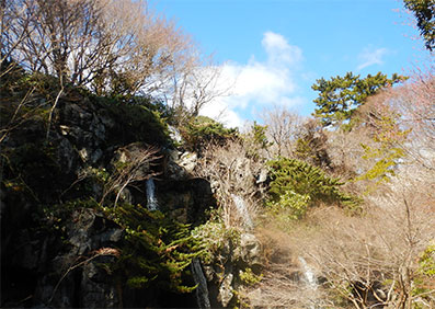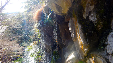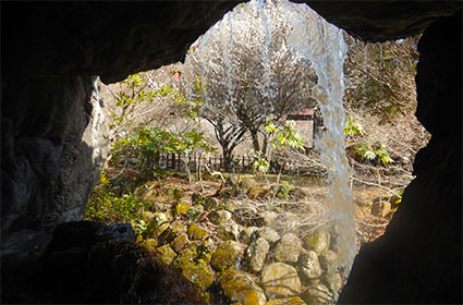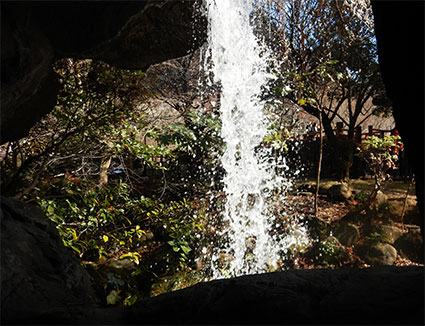 11:19・【梅見の滝】前回の折も訪ねた洞窟状の道の窓から流れ落ちる滝の水を眺めます。所謂、裏見の滝ですが少し細工が過ぎる感じもしますが素直に楽しむことにします。