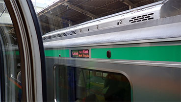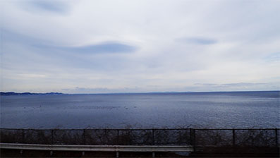 14:32・昨日降り立った大船駅に電車が止まります。ガラガラの車内なので移動はほぼ自由です。海側の席から移って観音様に手を合わせてお礼を言いました。
