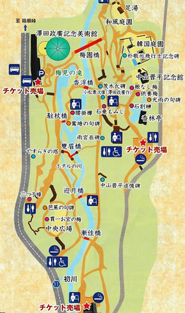 ←熱海梅園マップ(画像の一部にリンクが張られています): 熱海駅からバスで行けるようなので3年ほど前の、(2023年1月31日の熱海梅園)で訪れた梅園を再度訪ねることにしました。前回は御殿場での所要の帰路、箱根を超えての車での旅でしたので途中幾つかの場所を訪ねることができましたが、電車での旅ではそれも不可能となりました。選択の余地が無かった事もあり熱海梅園を訪ねることにしました。 |