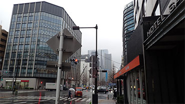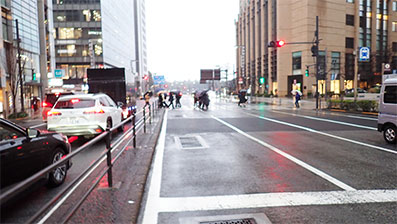 16:56・有楽町駅に向かう為に晴海通りを渡ります。進行方向の左は丸の内や皇居になります。反対側は銀座4丁目を通り晴海に向かいます。
