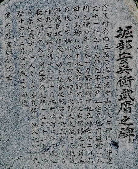 赤穂四十七士の一人、堀部安兵衛は当時の水谷町(現在の八丁堀1丁目)に住んでいたとの事から、昭和44年地元の八丁堀一丁目町会の方々によって建立されたと中央区観光協会の説明に書かれていました。