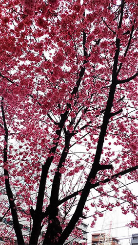 11:36・八重洲通を新川方向に歩いて行くと1本の桜が満開です。早咲きの桜でしょうが1本だけ広い八重洲通りにぽつんと立つ姿は極めて潔く可憐です。