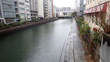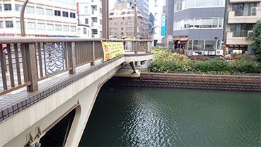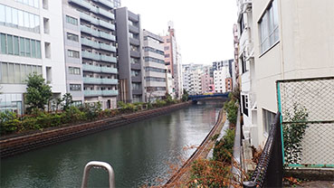 これから対岸の新川に渡り川沿いの道を次の新亀島橋に向かいます。