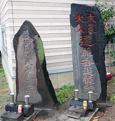11:39・新川から新亀島橋を渡り茅場町方向に向かうと橋のたもとに関東大震災と東京大空襲の慰霊碑が並んで置かれていました。地元の方が掃除やお参りをするのか綺麗な石碑の前に飲み物の缶が供えられていました。