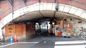 12:41・有楽町の楽しい事は町が薄ぺらで無い事です。帝国ホテルや皇居、丸の内、銀座に囲まれた中なのにこのようなレンガ作りの普通の店が並んでいるのです。