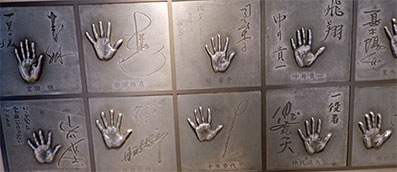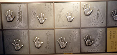 13:30・雨が強くなったので宝塚劇場から地下街に入り東宝シネマズに向かいます。余りチャラチャラした感じのしない楽しい地下街を進んで行くと、沢山の手形が飾られていました。多くは私が名前を知る俳優の人建の手形です。手を当てるとほぼ同じ大きさなので実物大の手形と思われます。