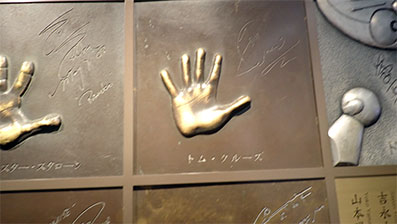 13:32・かなり沢山の俳優さんの手形が飾られていました(40人程と記憶していますが確かではありません)がシルベスター・スタローンやトム・クルーズが最後に飾られたいたのでトム・クルーズの手に乗せてみましたがやはり私より一回り大きかったです。